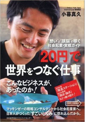 「20円」という値段には大きな意味があります。20円は、TFTが支援しているアフリカの子どもたちが学校で食べる給食一食分の値段なのです。つまり、TFTのへルシーメニューを選ぶと、その人は自動的にアフリカの子どもに給食を一食寄付したことになる、という寸法です。 普通にランチを食べることがそのまま社会貢献になるので、面と向かって寄付だ募金だ、と言われると思わず構えてしまう人も、抵抗なく参加することができます。いいことをしながら自分自身も健康になれるので、これまでのボランティア活動にありがちだった義務感や心理的強制といった重苦しさがないところも、TFTの活動が多くの人に支持される理由になっています。TFTを導入した企業側が、CSR(企業の社会的責任)活動として対外的にアピールできることもポイントです。 TFTは創設されてから3年弱になりますが、既に260もの企業や官公庁、大学などの団体がTFTに参加してくださり、330万食(約1万5000人の1年間の給食に相当)をルワンダ、ウガンダ、マラウィの3ヵ国の子どもたちに送ることができました。この実績は、TFTの理念や方向性が決して間違っていない、という自信につながっています。それだけ多くの人がTFTの活動に期待してくれていることの証左なのだと思っています。 現在、社員食堂以外に、レストランやカフェでのTFTメニューの導入、コンビニや宅配企業によるTFTブランド商品の提供、TFT自販機の設置(CUP FOR TWO)、弁当箱(BOX FOR TWO)などのTFT商品の提供、屋上菜園などを多角化を進めております。また国際化と言う観点から、アメリカ・インド・スイス・台湾などへも活動を広げており、5月にはコロンビア大学で飢餓と飽食をテーマにしたイベントを行いました。 TFTが本格的にやっている社会事業として認識され、いろいろな企業からTFTとのコラボレーション商品・イベントの申し出が増えています。例えば普通の商品に比べ寄付付きの商品は、味・価格・見た目より一般の人の心を引き付け、購買要因になっているということが顕著に表れています。ここ1年くらいで、若い人を中心に日本全体の社会貢献の意識・関心が、とても高くなってきていると実感します。 メディアで取り上げられたTFTを知った多くのビジネスパーソン・経営者や学生が、TFTのビジネスや戦略を理解して、「これは今までの社会貢献とは違うから、仕事として協力したい」と、実際に時間を割いて彼らの経験や知識や商材を提供してくれています。 日本ではじまったTFTがやがて各国に広がり、一大ムーブメントを引き起こす。そして世界中の人たちがTFTに参加したとき、この地球上から貧困が消える。その“想い”で日々活動しております。 TABLE FOR TWO:http://www.tablefor2.org/ ![]() 『20円で世界をつなぐ仕事』小暮真久 著 |